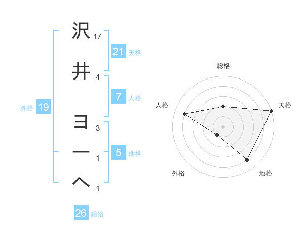 沢井 ヨーヘさんを姓名の画数から五運を鑑定