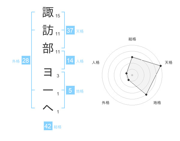 諏訪部 ヨーヘさんの天格は37画の5点!