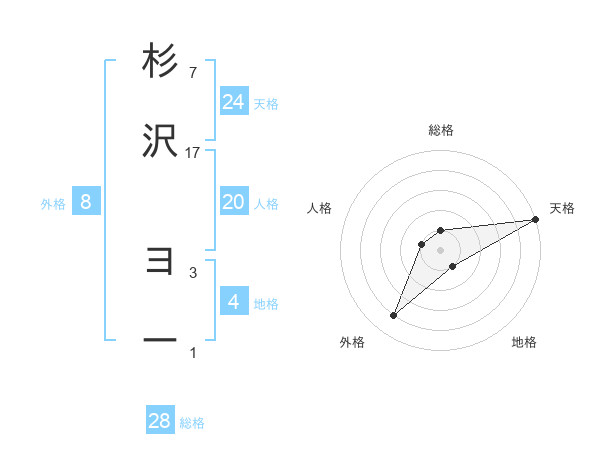 杉沢 ヨーさんを姓名の画数から五運を鑑定