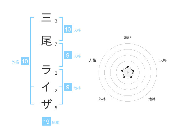 三尾 ライザさんを姓名の画数から五運を鑑定