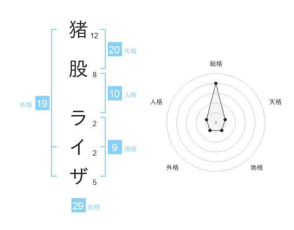 猪股 ライザさんを姓名の画数から五運を鑑定
