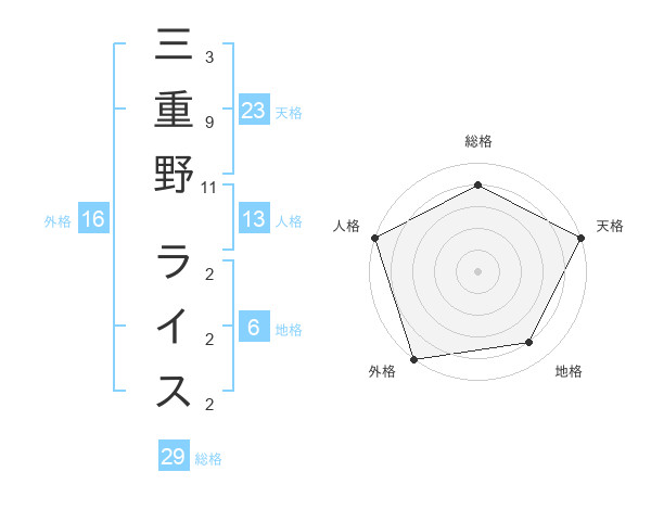 三重野 ライスさんの天格は23画の5点