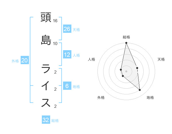 頭島 ライスさんの総格は32画の5点!