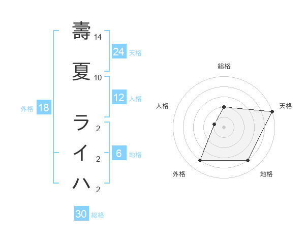 壽夏 ライハさんを姓名の画数から五運を鑑定