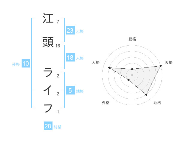 江頭 ライフさんを姓名の画数から五運を鑑定