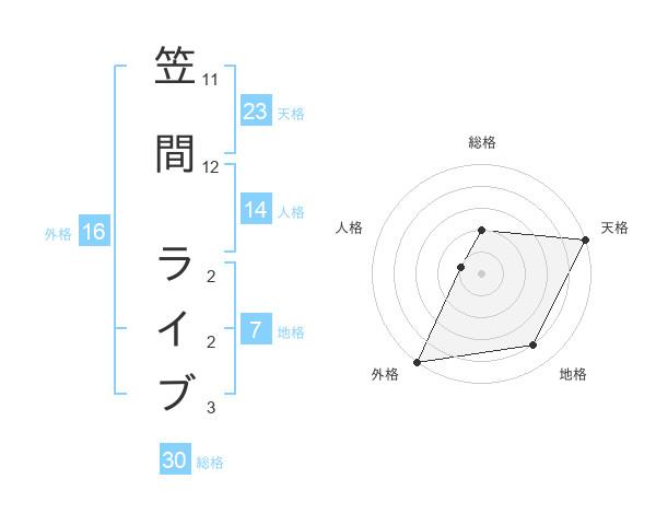 笠間 ライブさんの総格は30画の2点!