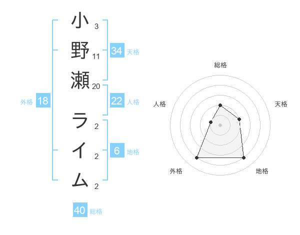 小野瀬 ライムさんを姓名の画数から五運を鑑定
