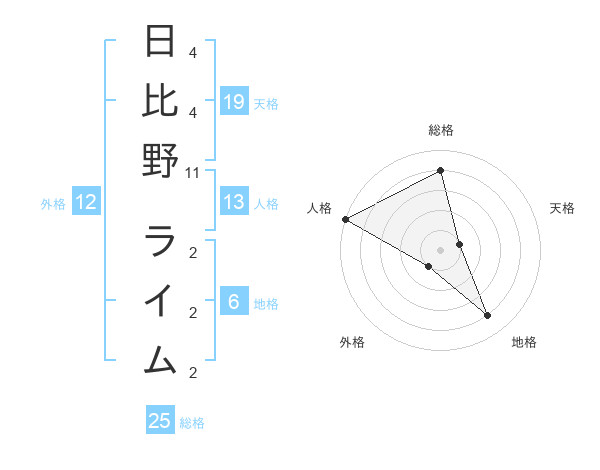 日比野 ライムさんの総格は25画の4点