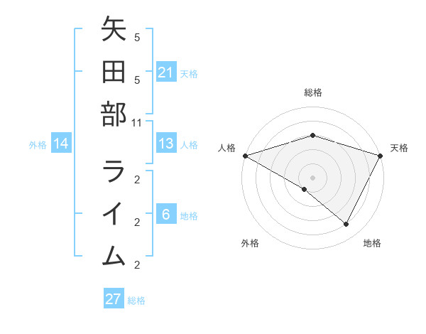 矢田部 ライムさんを姓名の画数から五運を鑑定