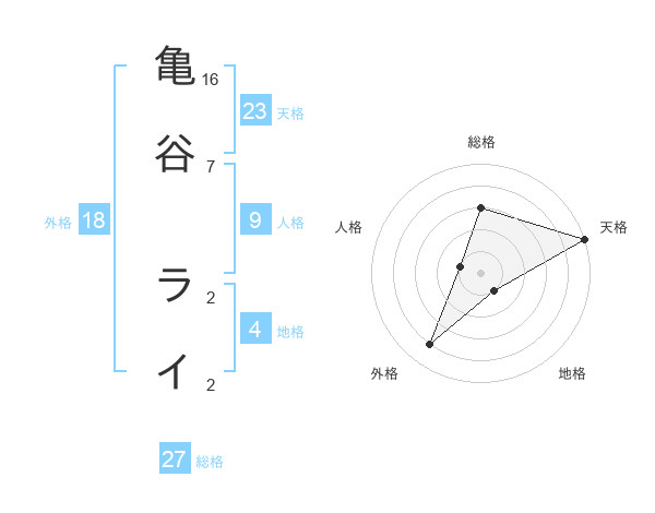亀谷 ライさんを姓名の画数から五運を鑑定