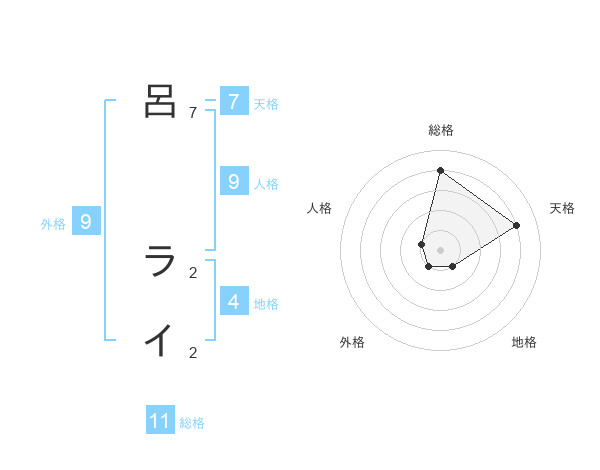 呂 ライさんの総格は11画の4点!