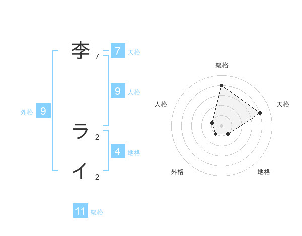 李 ライさんの総格は11画の4点!