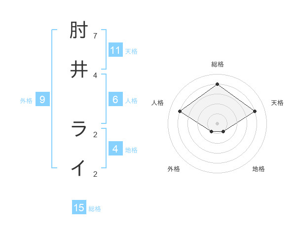 肘井 ライさんの総格は15画の4点!