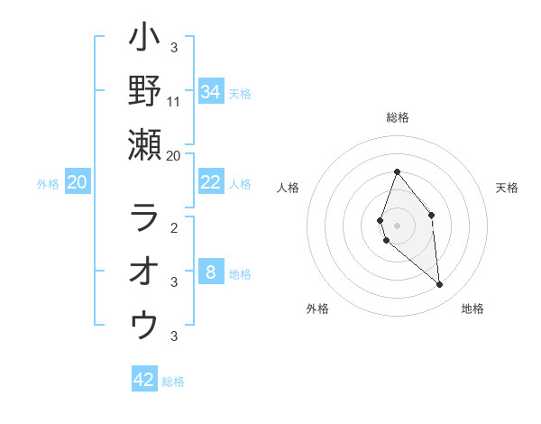 小野瀬 ラオウさんの総格は42画の3点
