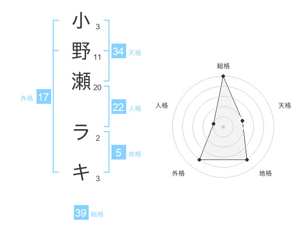 小野瀬 ラキさんを姓名の画数から五運を鑑定