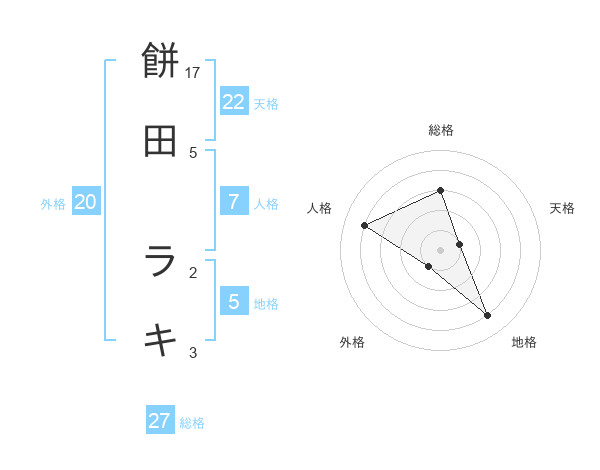餅田 ラキさんの総格は27画の3点!