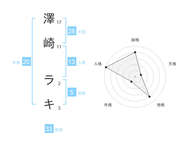 澤崎 ラキさんを姓名の画数から五運を鑑定
