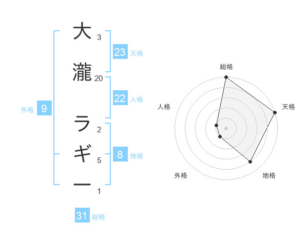 大瀧 ラギーさんの総格は31画の5点!