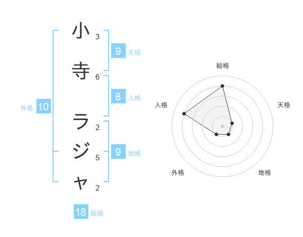 小寺 ラジャさんの総格は18画の4点!