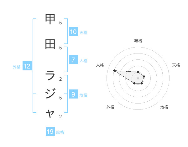 甲田 ラジャさんの総格は19画の1点