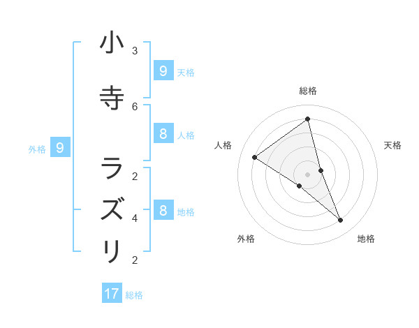 小寺 ラズリさんの総格は17画の4点!