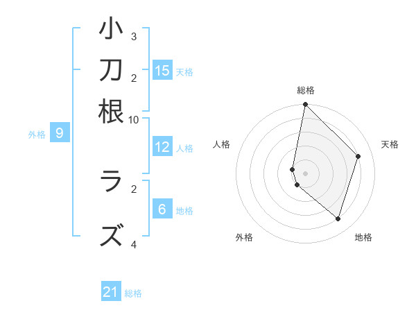 小刀根 ラズさんを姓名の画数から五運を鑑定