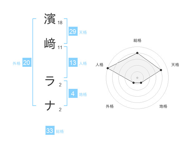 濱﨑 ラナさんの総格は33画の4点!