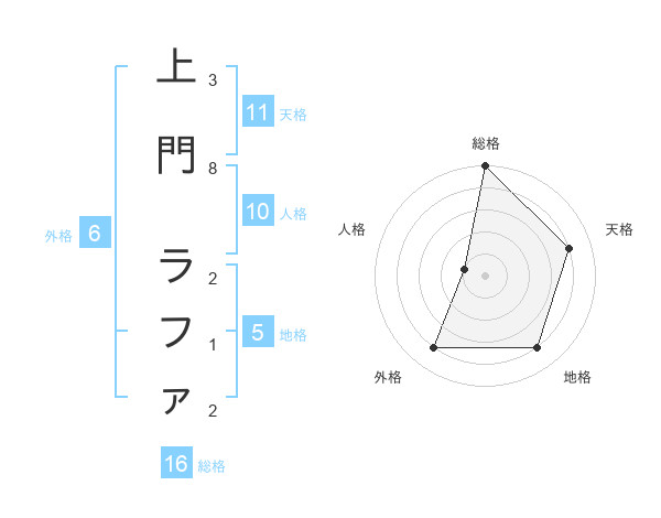 上門 ラファさんの総格は16画の5点!