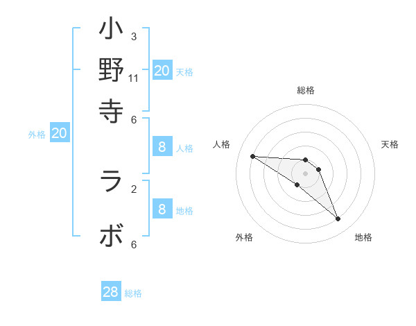 小野寺 ラボさんの総格は28画の1点!