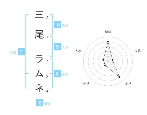 三尾 ラムネさんを姓名の画数から五運を鑑定