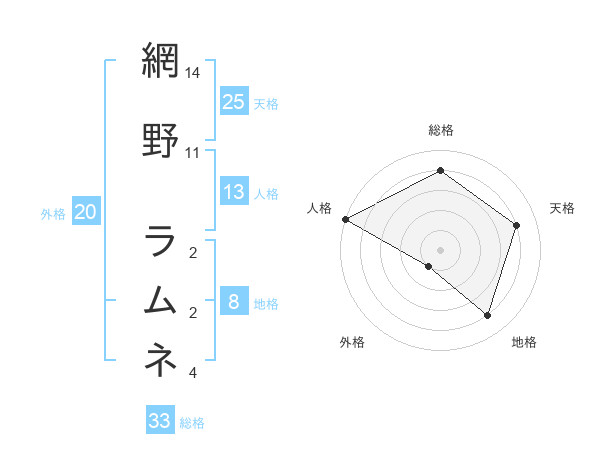 網野 ラムネさんの天格は25画の4点!