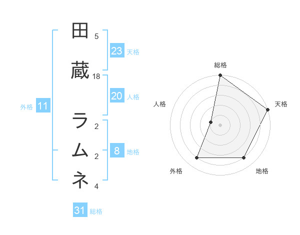 田蔵 ラムネさんの総格は31画の5点!