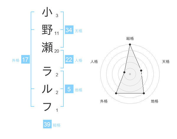 小野瀬 ラルフさんを姓名の画数から五運を鑑定