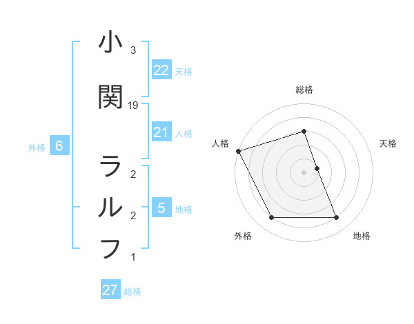 小関 ラルフさんを姓名の画数から五運を鑑定