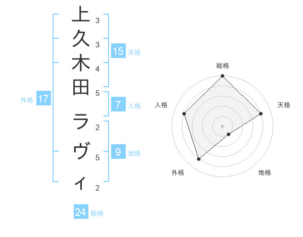 上久木田 ラヴィさんを姓名の画数から五運を鑑定