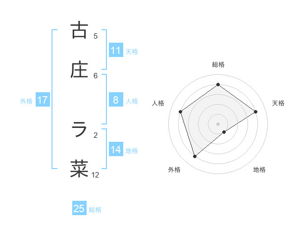 古庄 ラ菜さんの総格は25画の4点!