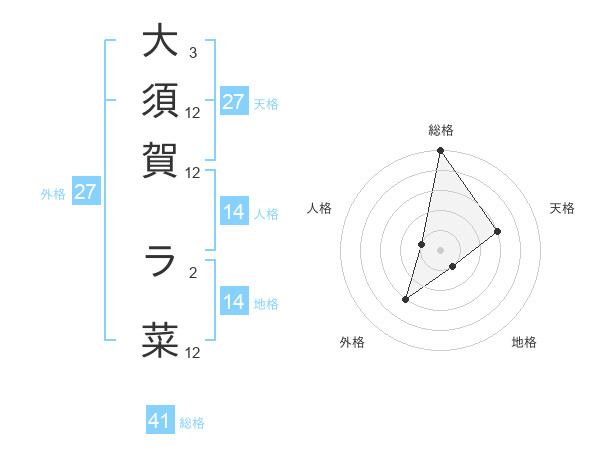 大須賀 ラ菜さんの総格は41画の5点!