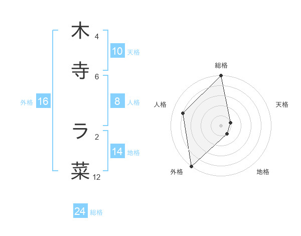 木寺 ラ菜さんの総格は24画の5点!