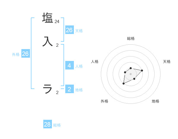 塩入 ラさんの外格は26画の2点!