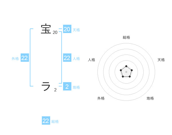 宝 ラさんの総格は22画の1点!