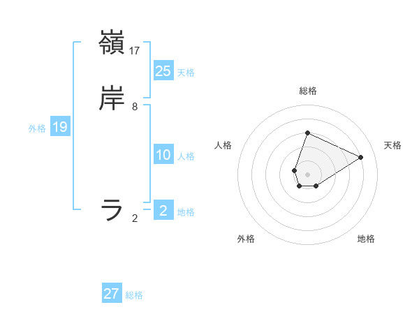 嶺岸 ラさんの総格は27画の3点!