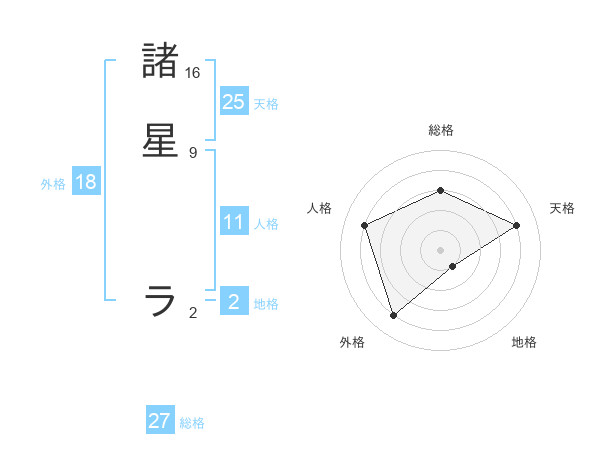 諸星 ラさんの天格は25画の4点!