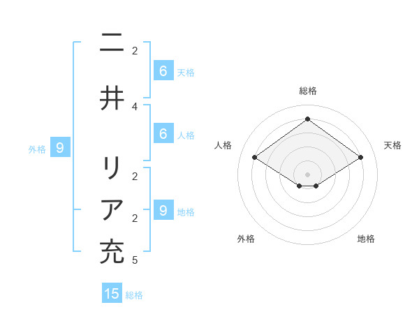 二井 リア充さんの総格は15画の4点!