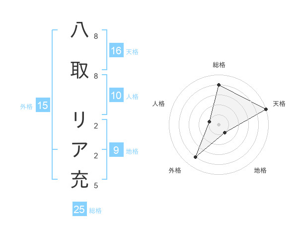八取 リア充さんの総格は25画の4点!