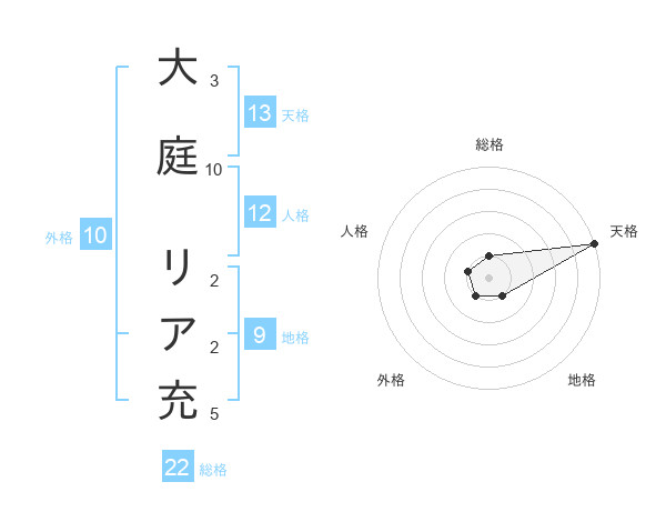 大庭 リア充さんを姓名の画数から五運を鑑定