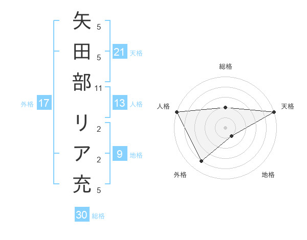 矢田部 リア充さんを姓名の画数から五運を鑑定