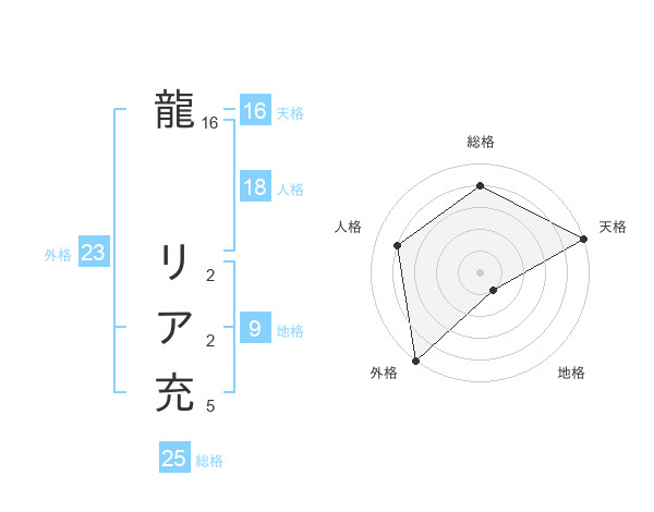 龍 リア充さんの総格は25画の4点!
