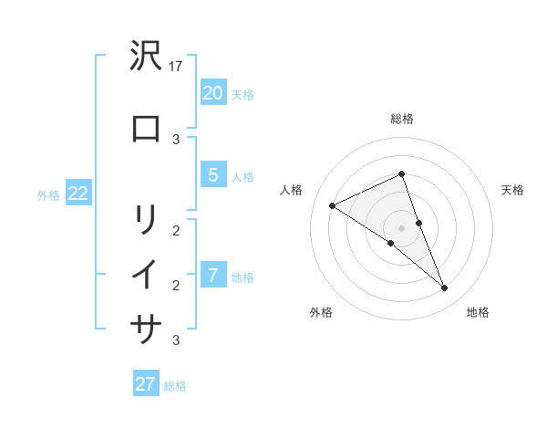 沢口 リイサさんを姓名の画数から五運を鑑定