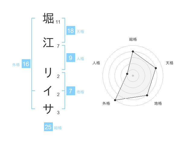 堀江 リイサさんを姓名の画数から五運を鑑定