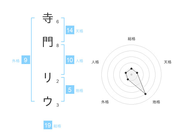 寺門 リウさんの地格は5画の4点!